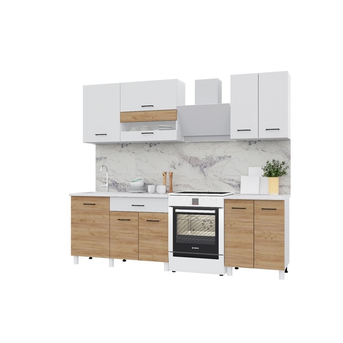 Кухонный гарнитур Тренд 1800, Белый/Белый/Дуб золотой