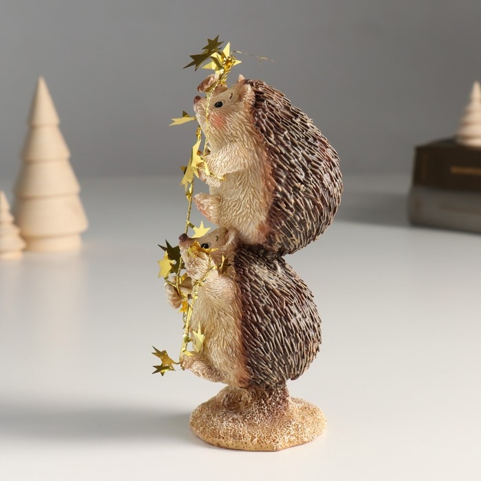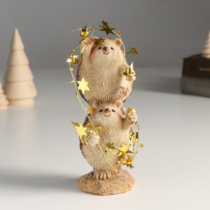 Сувенир полистоун "Ёжики с гирляндой со звёздами - акробаты" 6х7х15,5 см