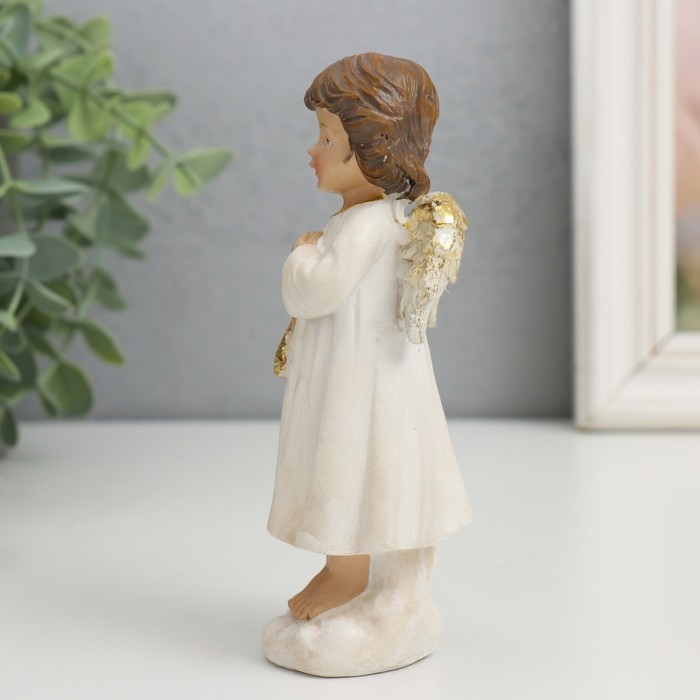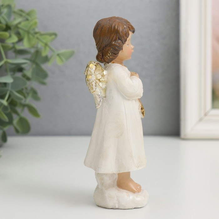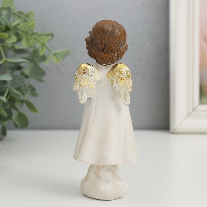 Сувенир полистоун "Ангелочек в бежевой тоге со звёздочкой" золотые крылья 4,5х5х13 см