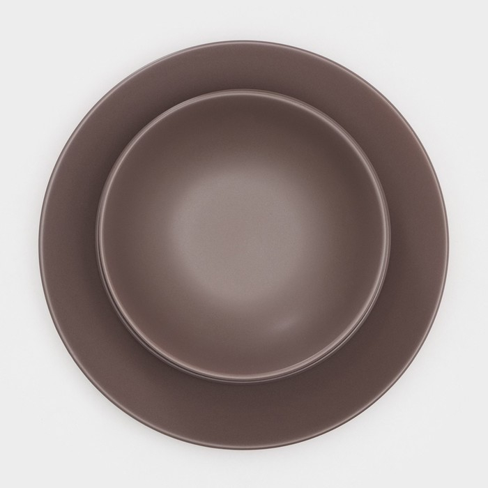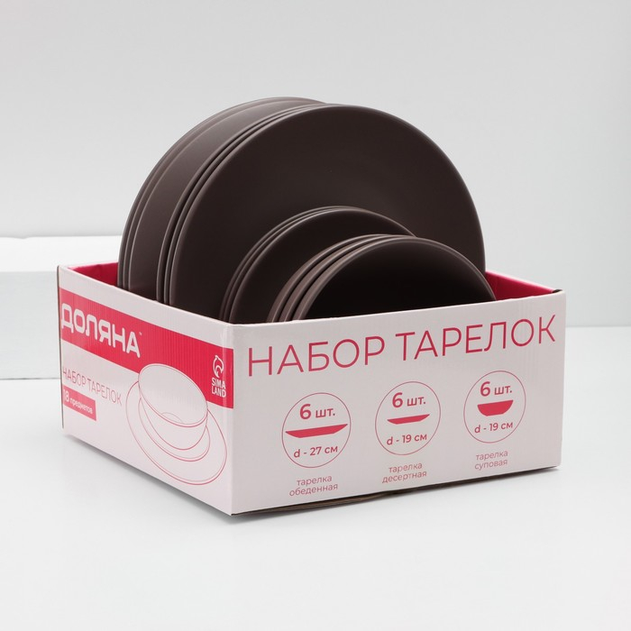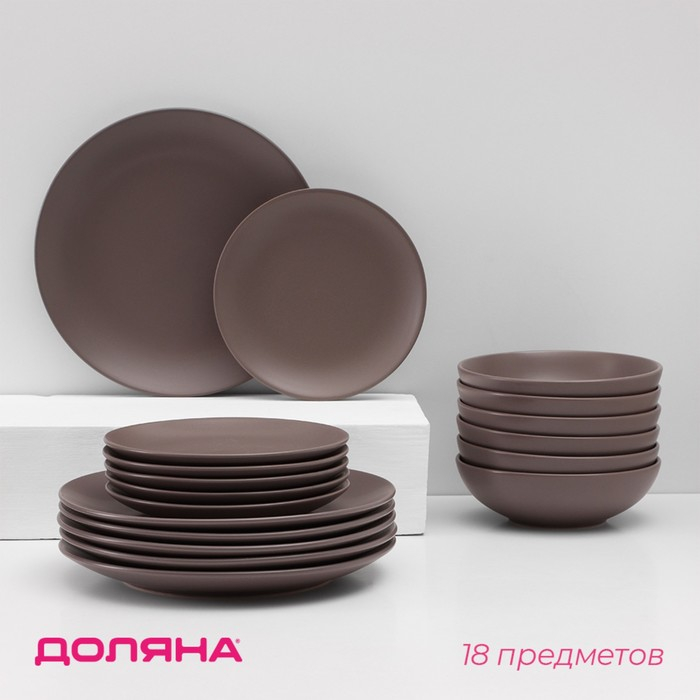 Набор тарелок керамических Доляна «Пастель», 18 предметов: 6 тарелок d=19 см, 6 тарелок d=27 см, 6 мисок d=19 см, цвет коричневый