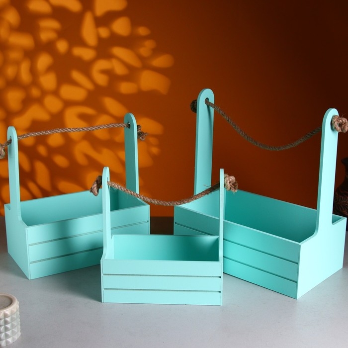 Набор кашпо деревянных 3 в 1 (29×18×33; 25×15×30; 21×12×23) "Аром", Мятный