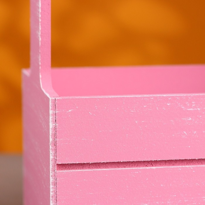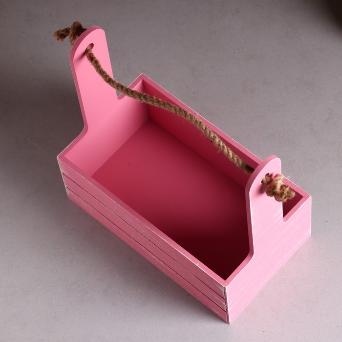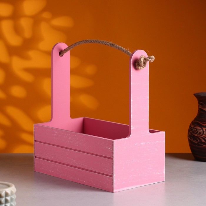 Кашпо деревянное 25.5×15×30 см "Аром", ручка канат, Розовый Коралл Прованс