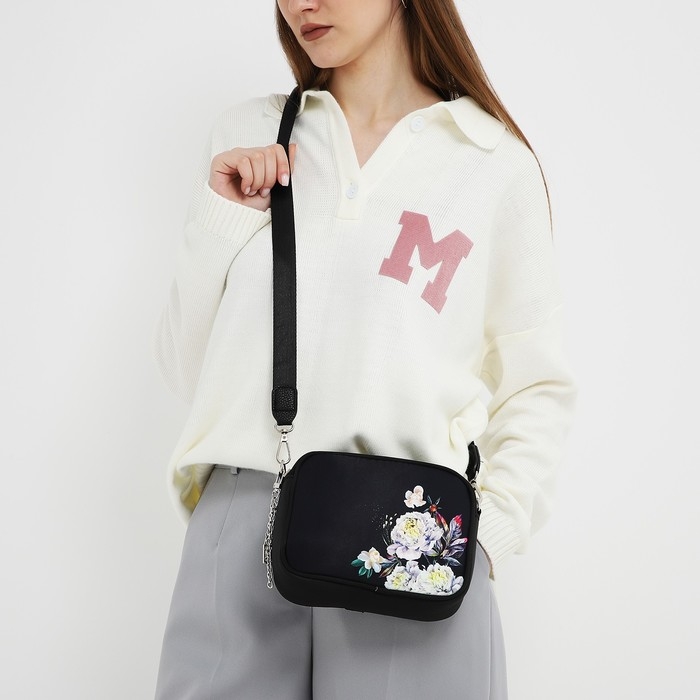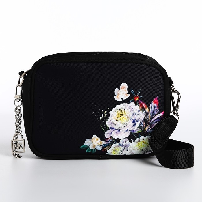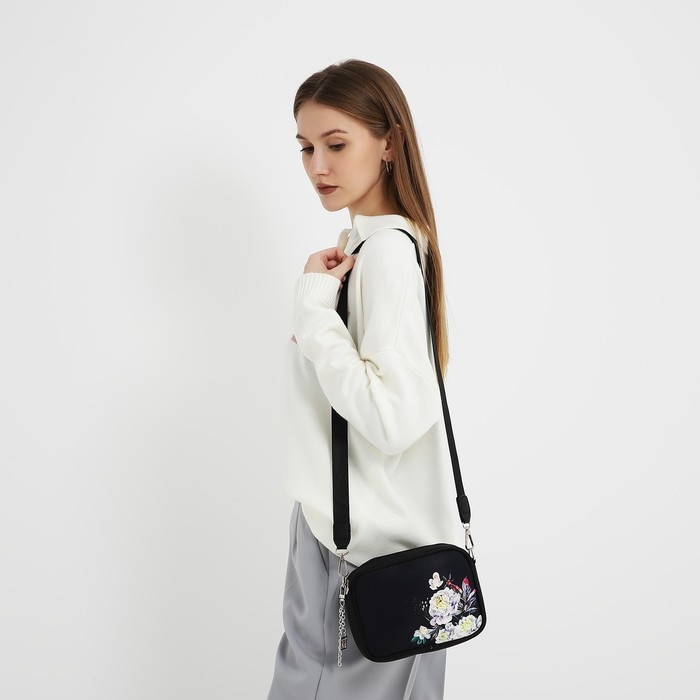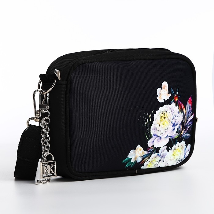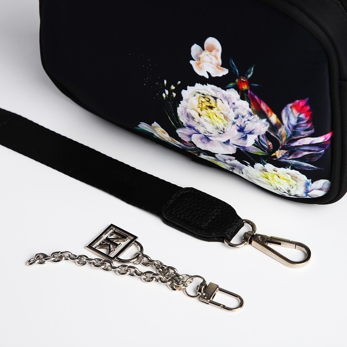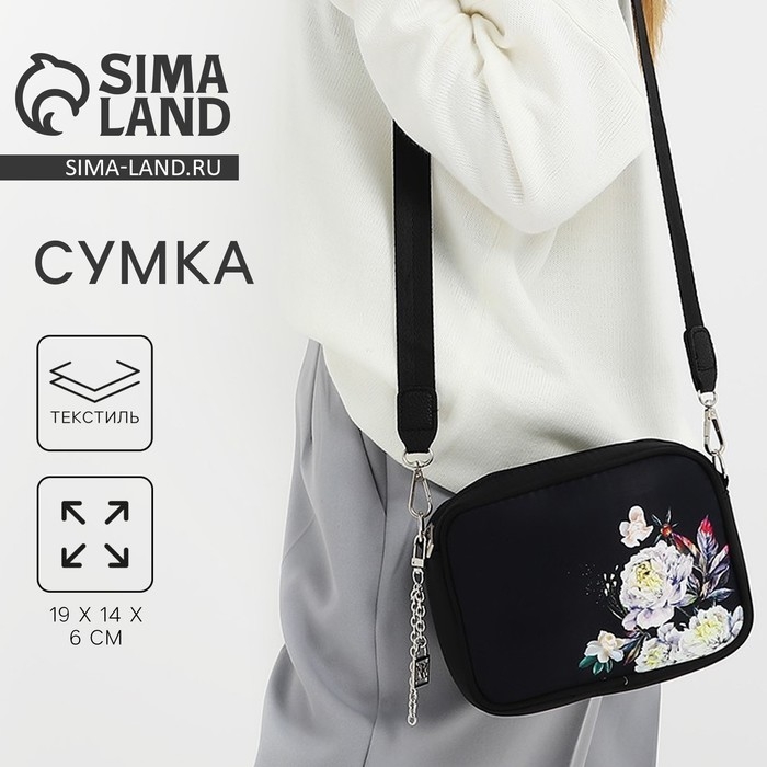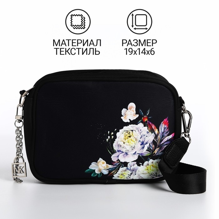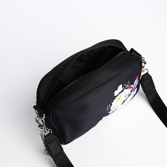 Сумка женская текстильная «Цветы», 19х14х6 см, чёрный