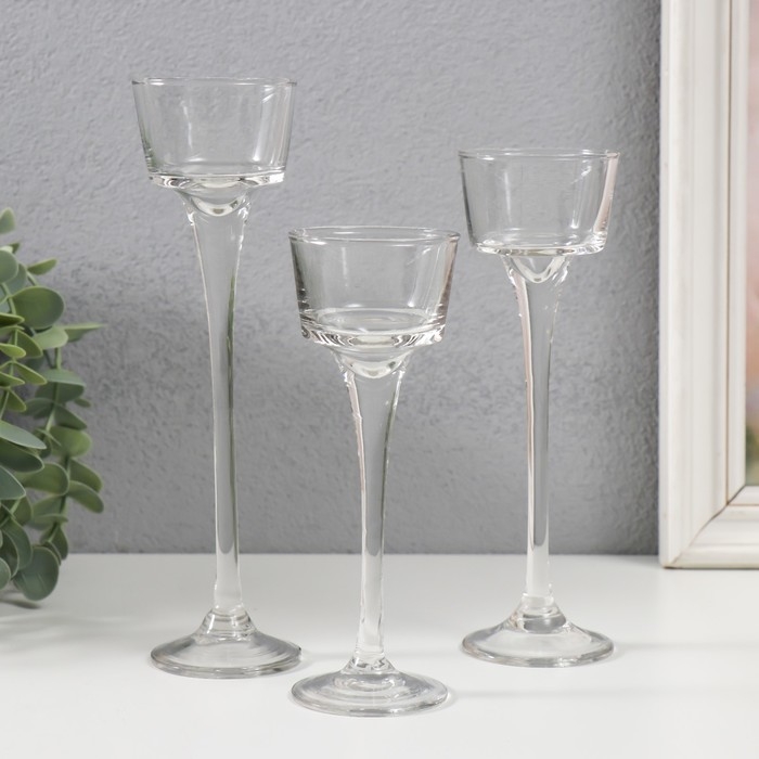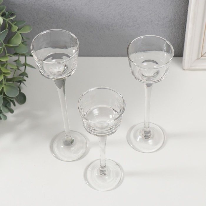 Подсвечник стекло набор 3 шт "Прозрачность мыслей" высота 15 см, 17,5 см, 20 см прозрачный