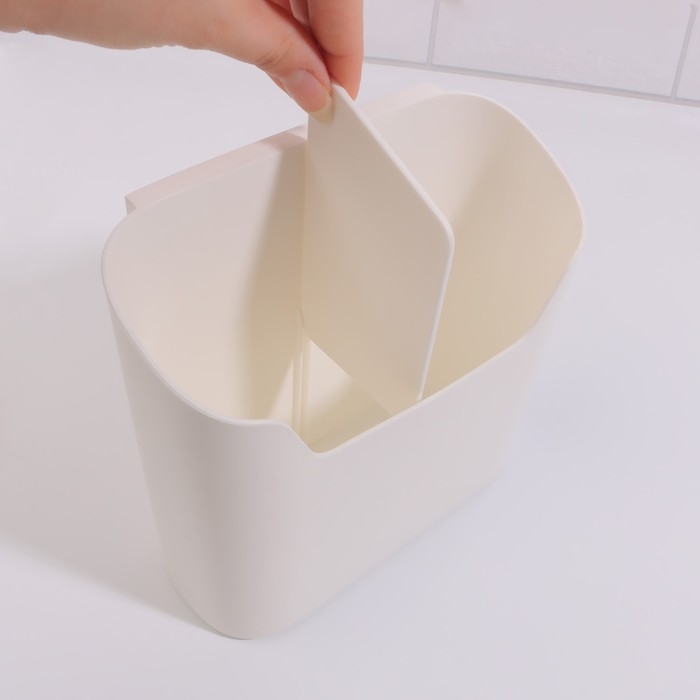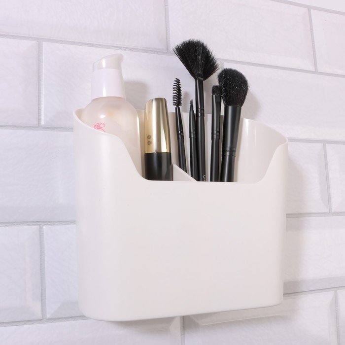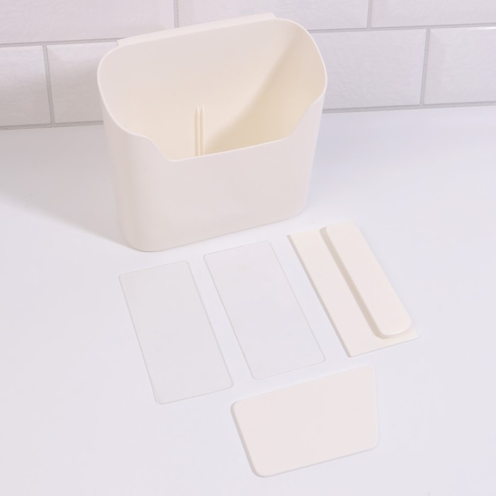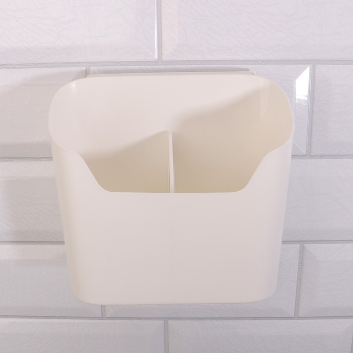 Органайзер для хранения «Нежность», навесной, 2 секции, с клеевой основой, 16,7 × 6,9 см, цвет белый