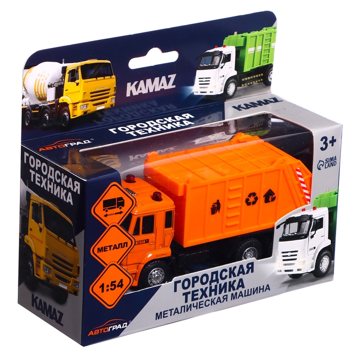 Грузовик металлический «КАМАЗ. Мусоровоз», инерционный, 1:54, цвет оранжевый