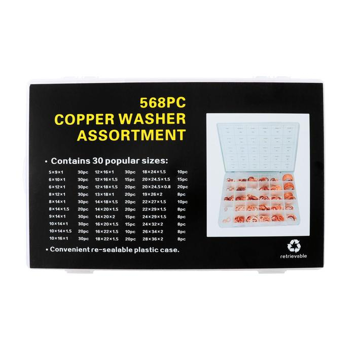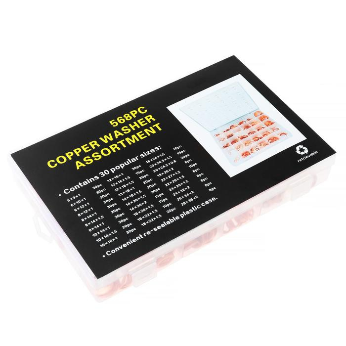 Набор медных прокладок, 30 размеров, 568 шт