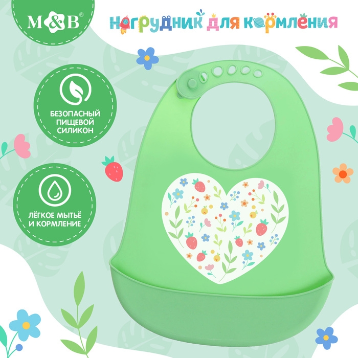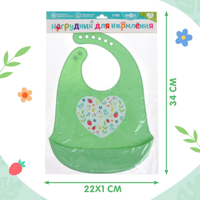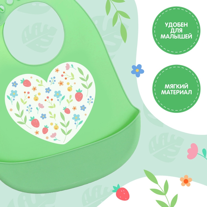 Нагрудник для кормления «Сердце», силиконовый, с карманом, цвет зелёный