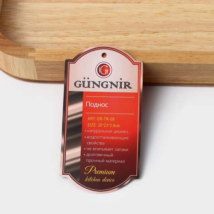 Поднос с ручками «Люкс», 30×23×2,8 см, гевея