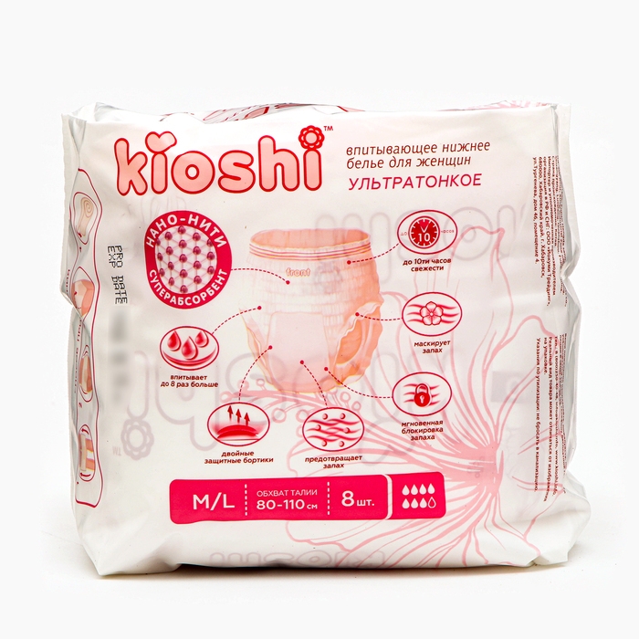 Трусики для женщин KIOSHI ультратонкие впитывающие, размер M/L, 8 шт