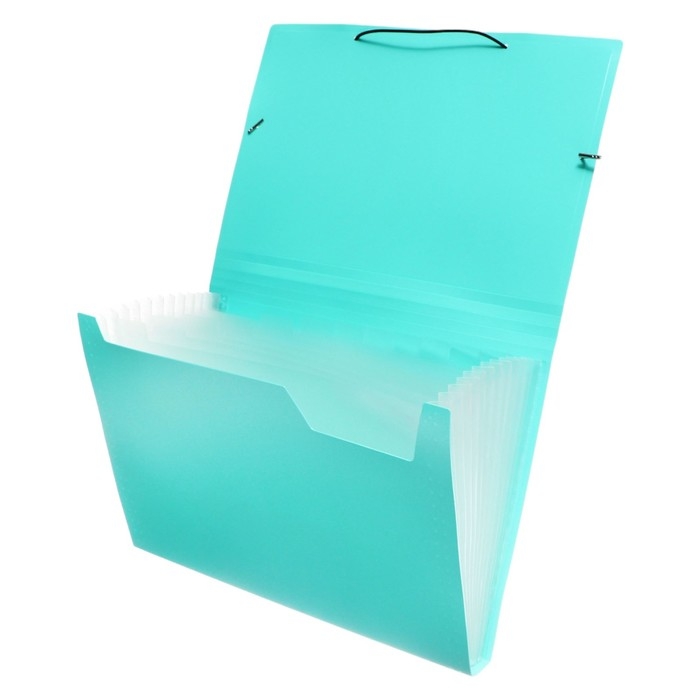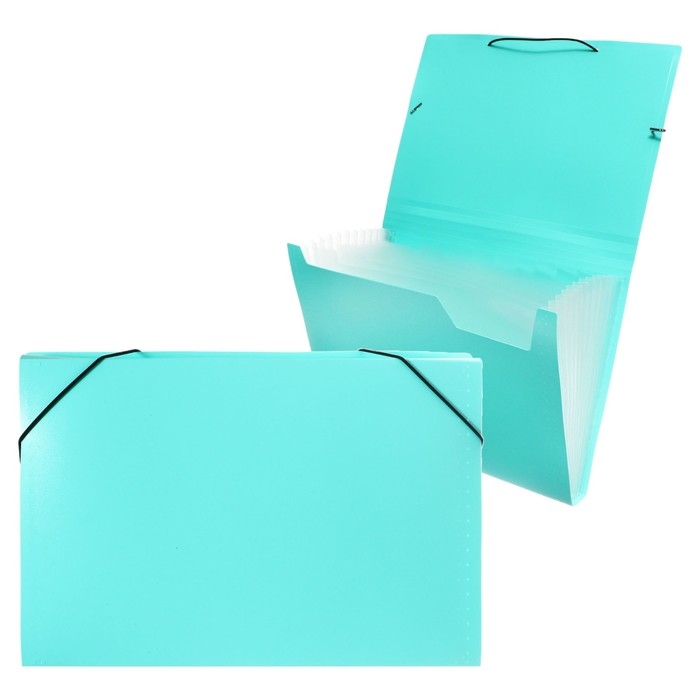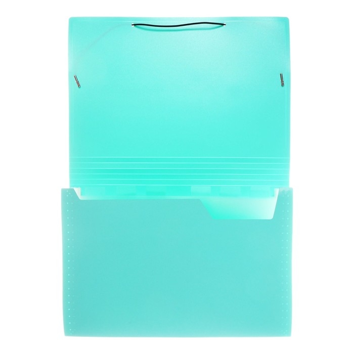 Папка картотека А4, Calligrata "Акварель", 13 отделений, пластиковая, 700 мкм, мятная, резинка чёрная