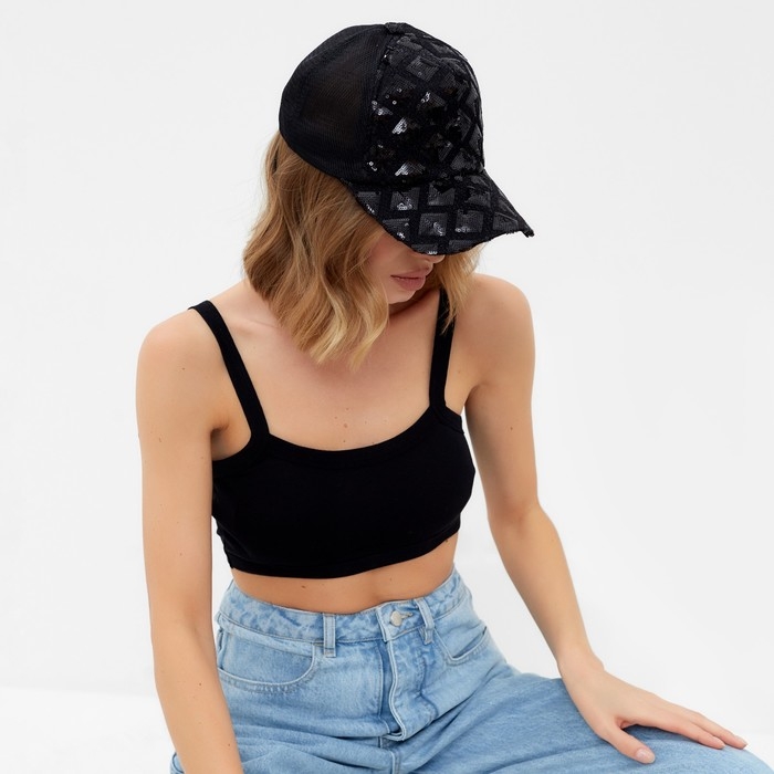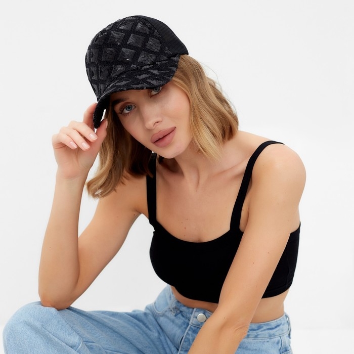 Кепка женская MINAKU с блестящими вставками цвет чёрный, р-р 56-58