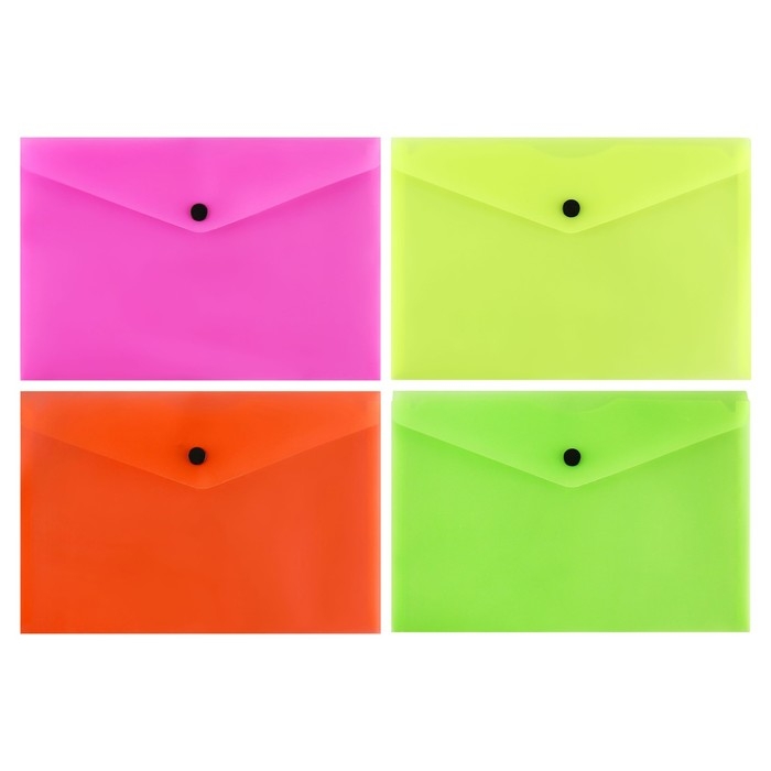 Набор папок-конвертов на кнопке 12 штук, А5, 150 мкм, Calligrata Neon, полупрозрачные, неоновый микс