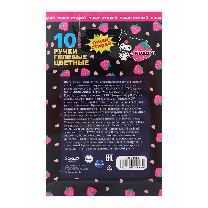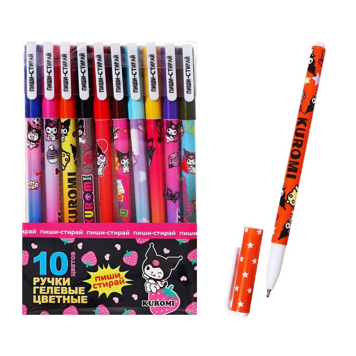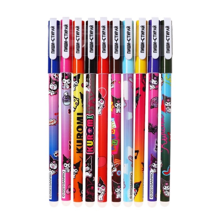 Набор гелевых ручек 10 цветов Kuromi, игольчатый узел 0.5 мм, со стираемыми чернилами