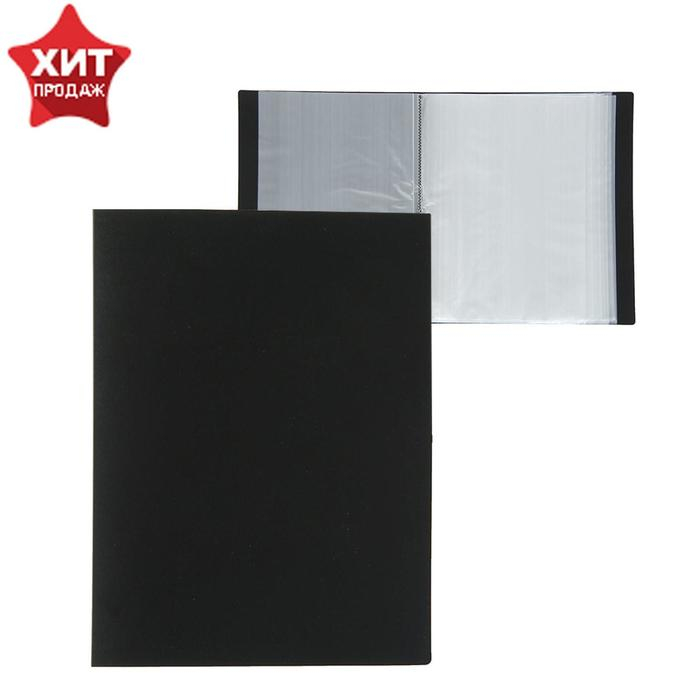Папка с 100 вкладышами А4, 700 мкм, Calligrata, текстура "песок", чёрная