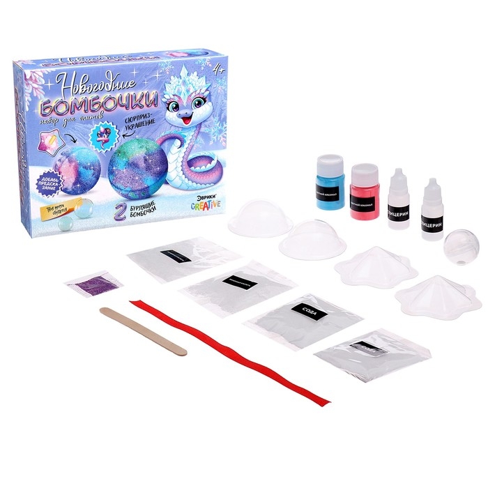 Набор для опытов «Новогодние бомбочки» — это сочетание научного подхода и праздничного настроения. Такой подарок поможет ребёнку скрасить ожидание Нового года и создать две разноцветных бомбочки для ванны.