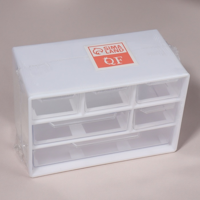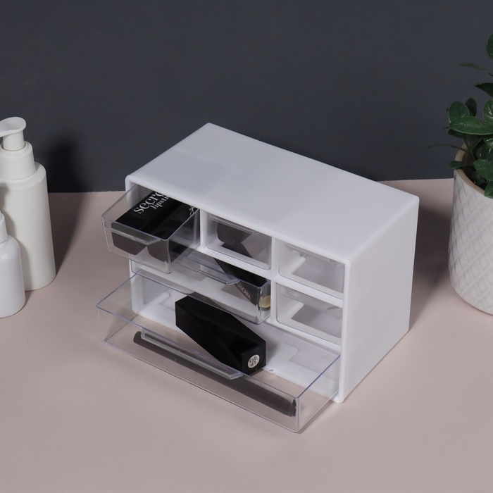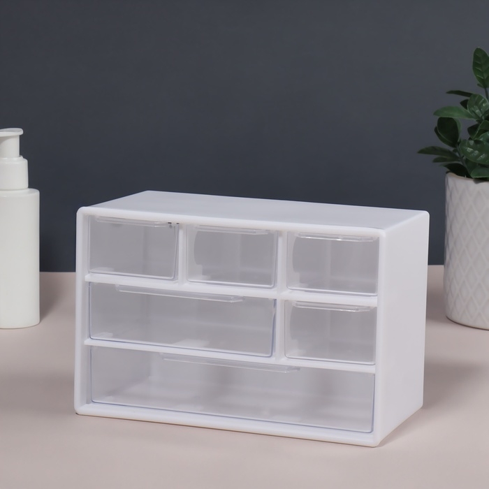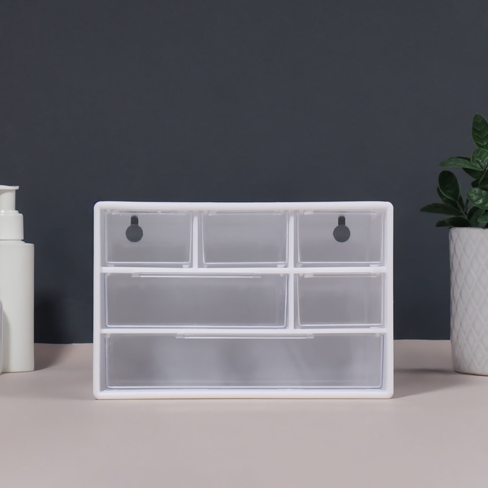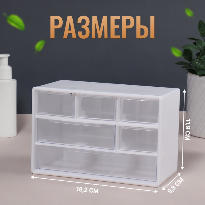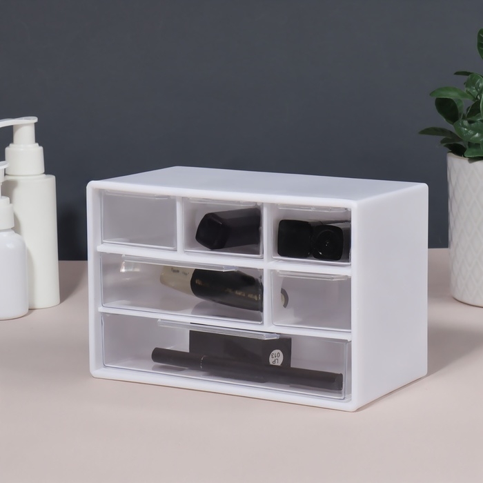 Органайзер для хранения, трёхуровневый, 6 секций, 18,2 × 11,9 × 9,8 см, цвет белый/прозрачный