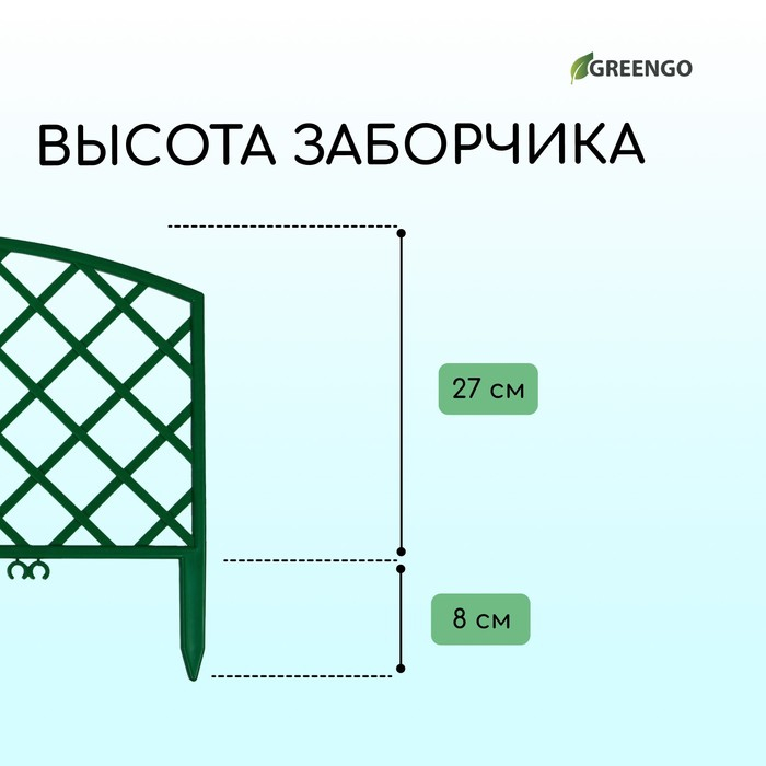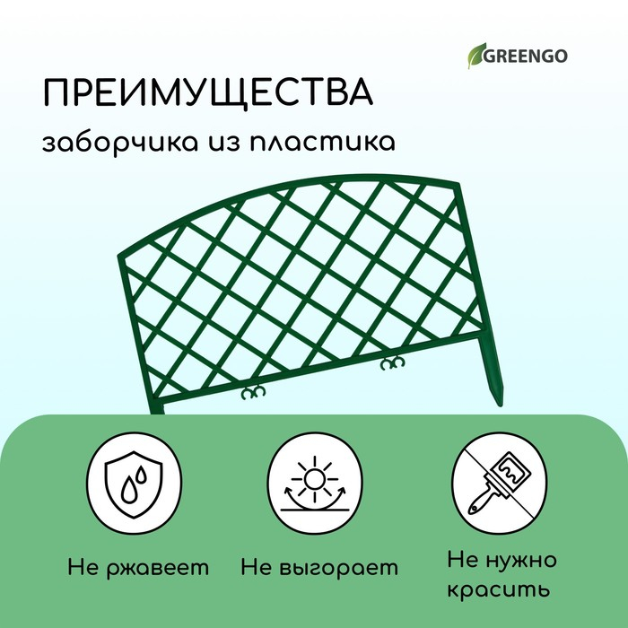Ограждение декоративное, 35 × 220 см, 5 секций, пластик, зелёное, ROMANIKA, Greengo