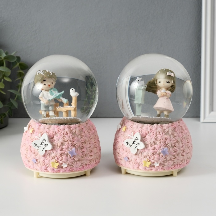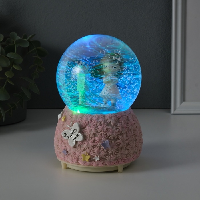 Сувенир полистоун водяной шар свет, музыка "Цветочная полянка и малыш" МИКС 10х10х14,5 см