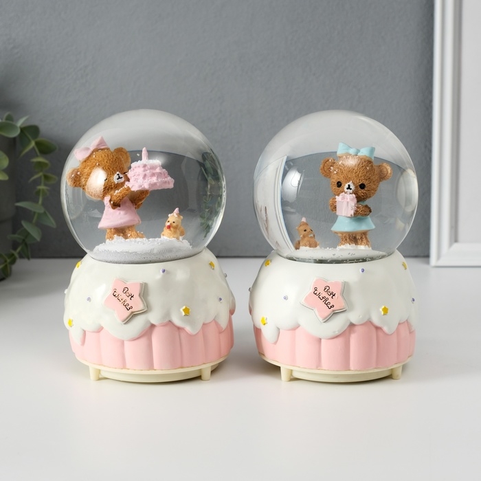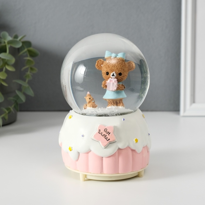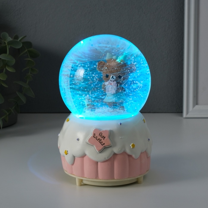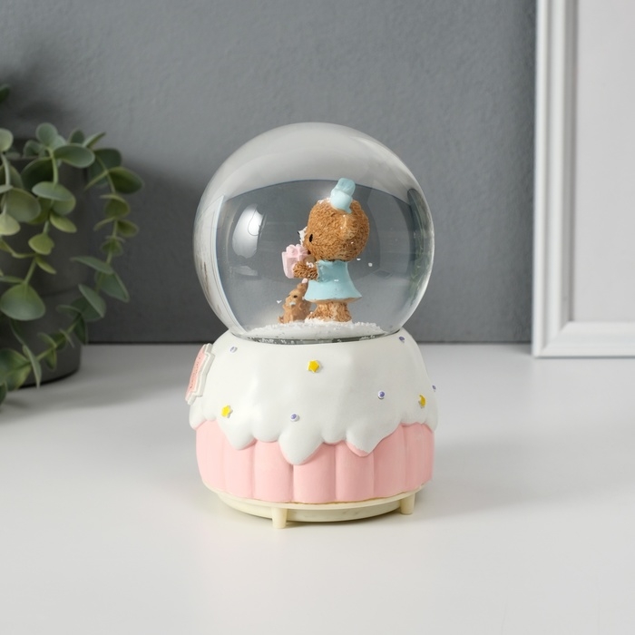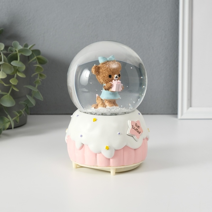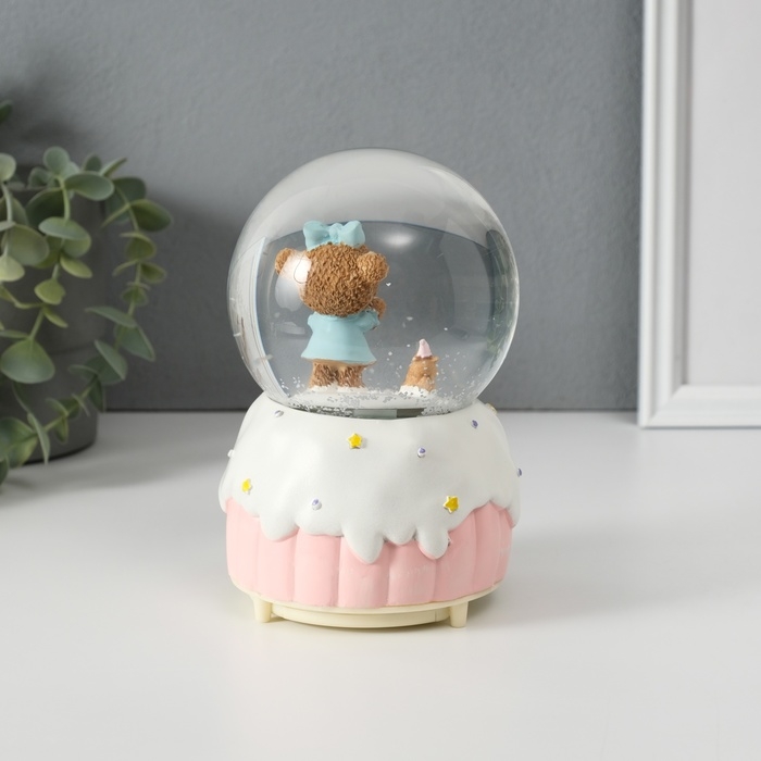 Сувенир полистоун водяной шар свет, музыка "Мишка и торт" МИКС 10,2х10,2х15,8 см