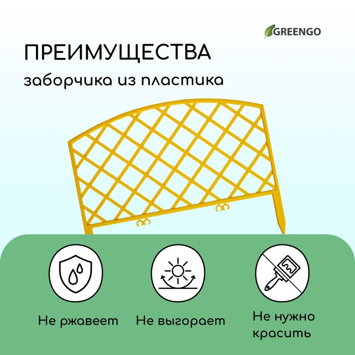 Ограждение декоративное, 35 × 220 см, 5 секций, пластик, жёлтое, ROMANIKA, Greengo
