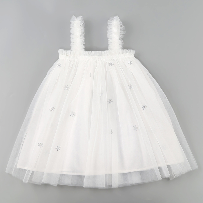 - Лёгкое и воздушное платье, украшенное сверкающими снежинками, создаст сказочный образ.