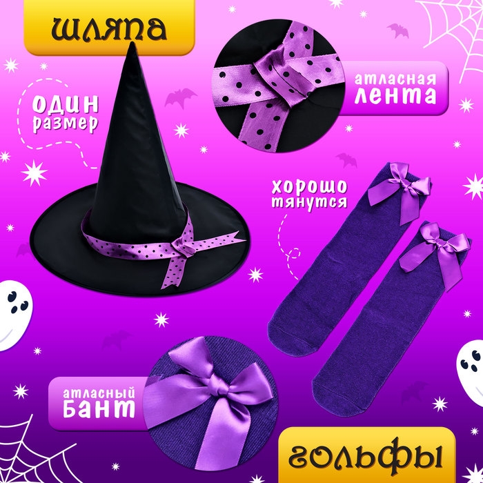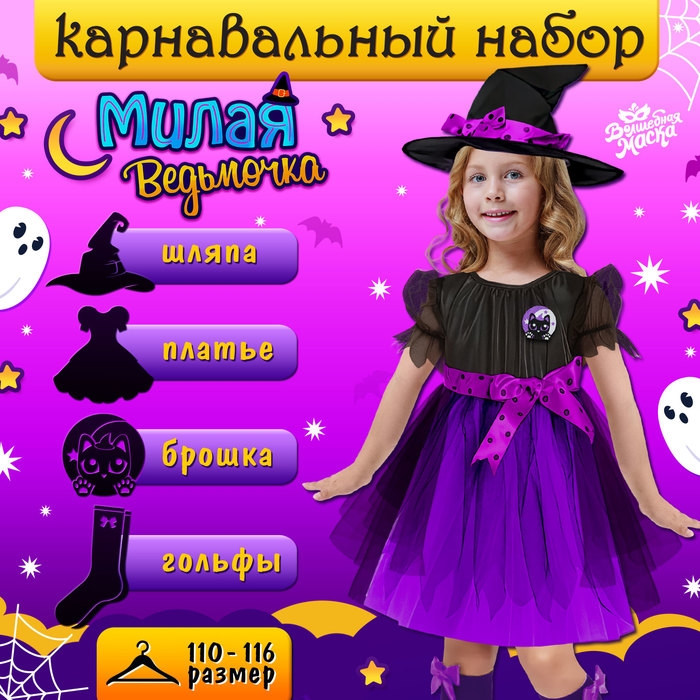 Карнавальный набор «Милая ведьмочка», рост 110-116 см, цвет фиолетовый