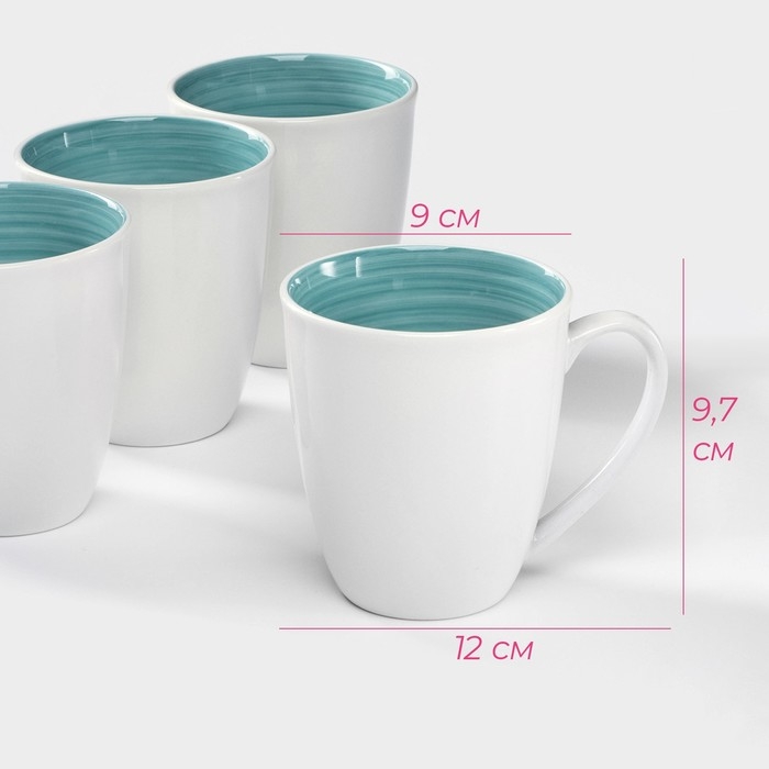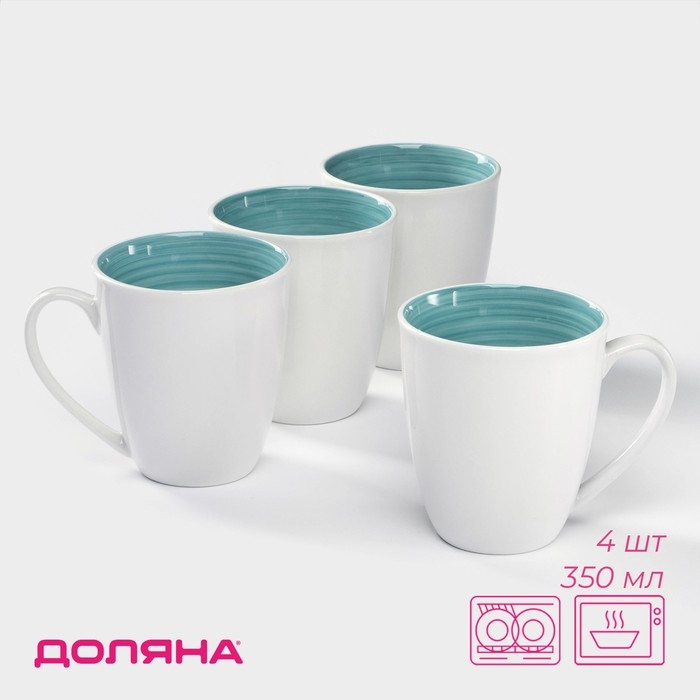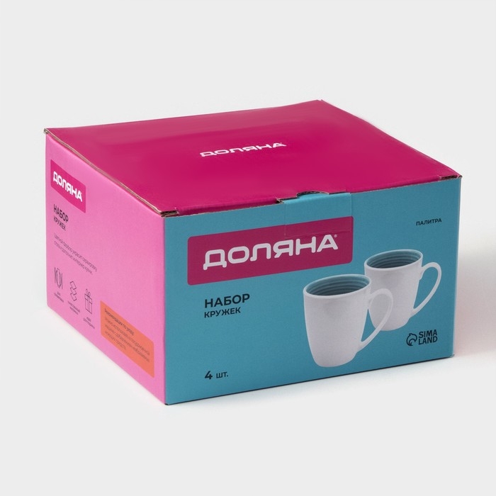 Набор фарфоровых кружек Доляна «Палитра», 4 предмета: 350 мл, цвет белый