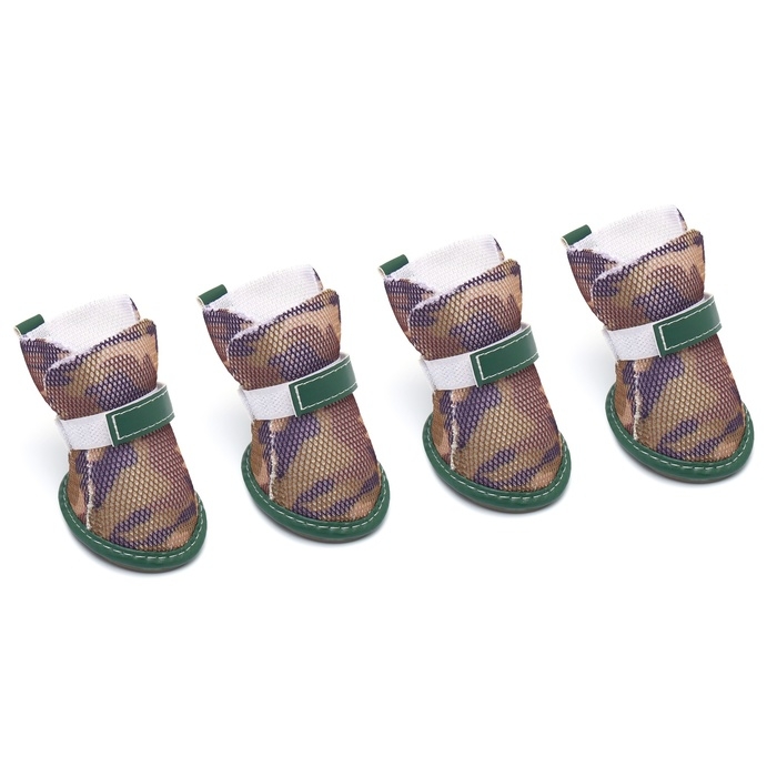Ботинки для собак "Боец", набор 4 шт, размер 1 (подошва 4 х 3,2 см), камуфляж