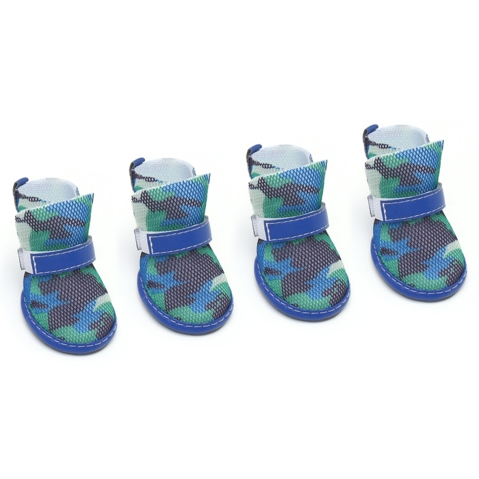 Ботинкидля собак "Боец", набор 4 шт, размер 4 (подошва 5,5 х 4,5 см) камуфляж синий