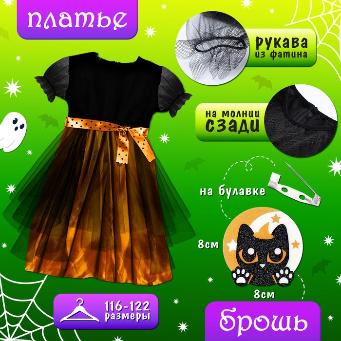 Карнавальный набор «Милая ведьмочка», рост 116-122 см, цвет оранжевый