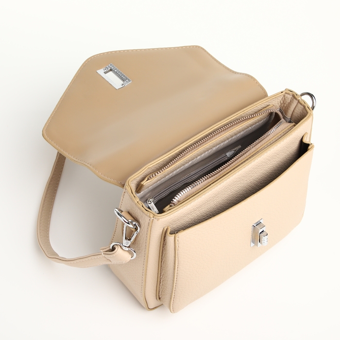 Сумка женская на клапане TEXTURA, маленький размер, цвет молочный