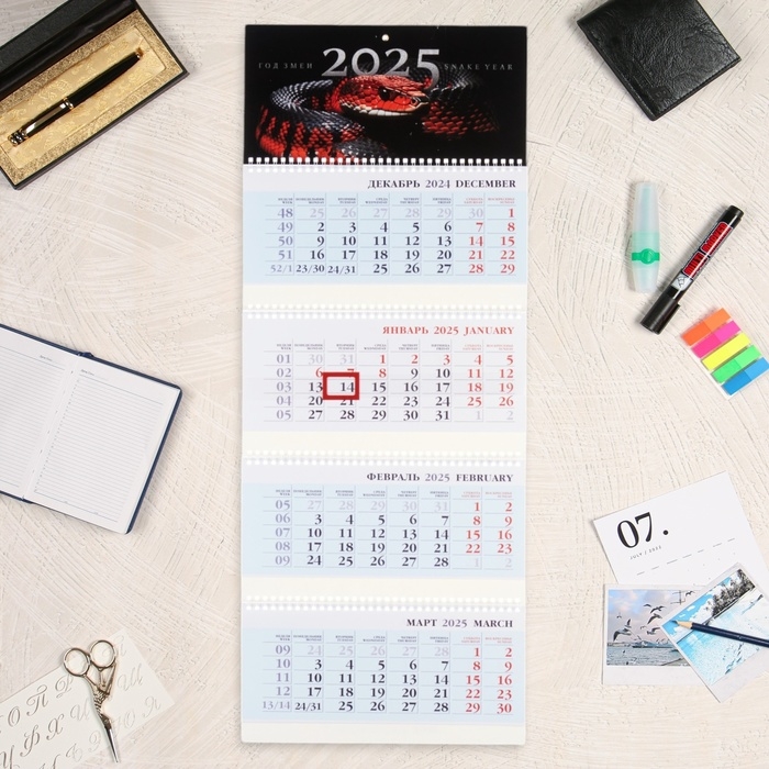 Календарь квартальный квадро "Символ года" 2025 год, 29,7 х 75,5 см