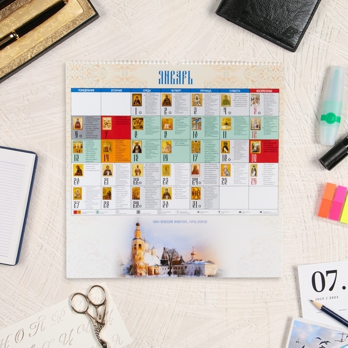 Календарь перекидной на ригеле "Святая Русь" 2025 год, 44,5 х 44,5 см