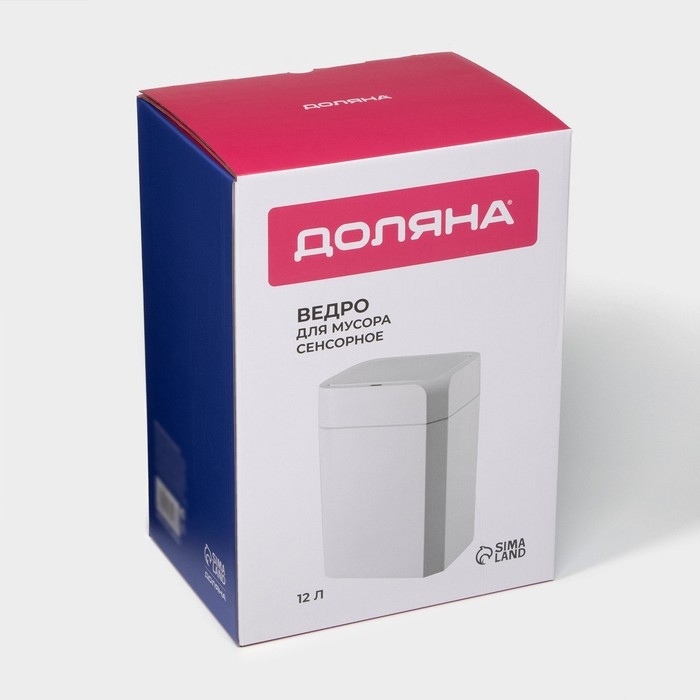 Ведро для мусора сенсорное Доляна, 12 л, цвет белый