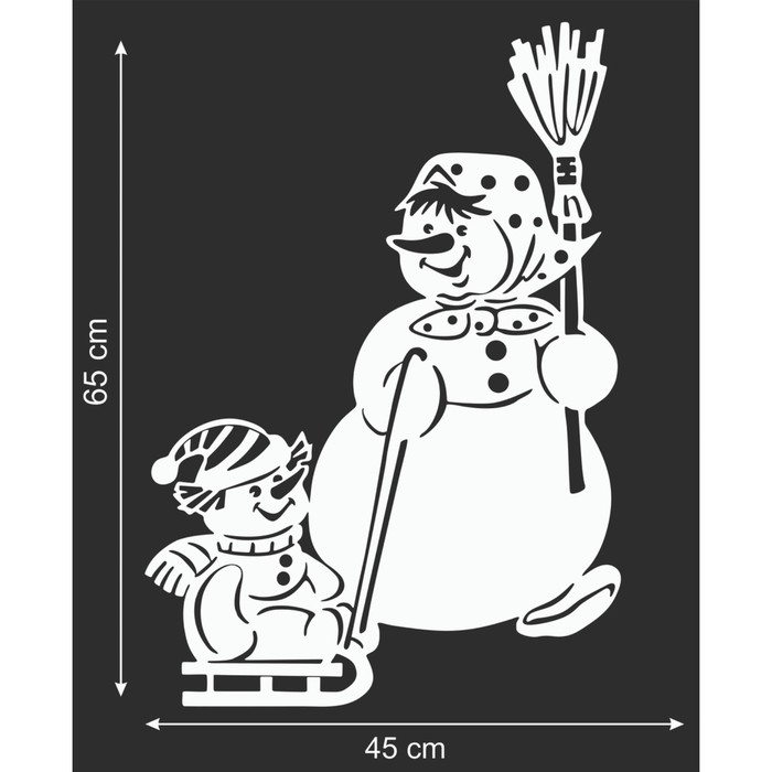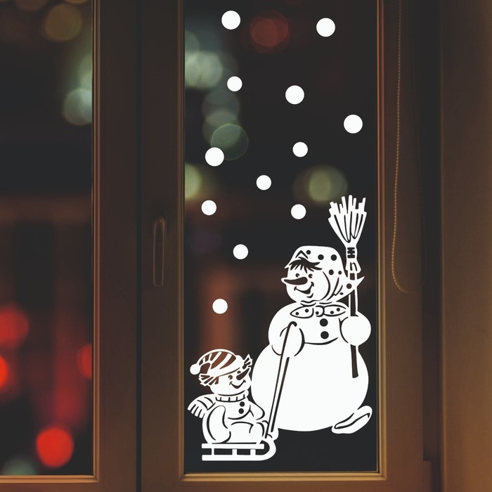Наклейка декоративная для окон "Снеговик на санках" 45х65 см