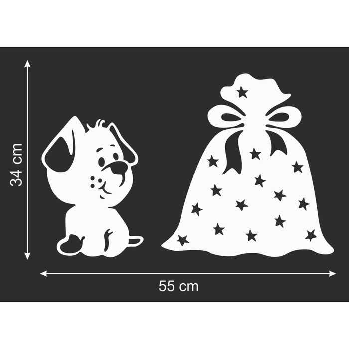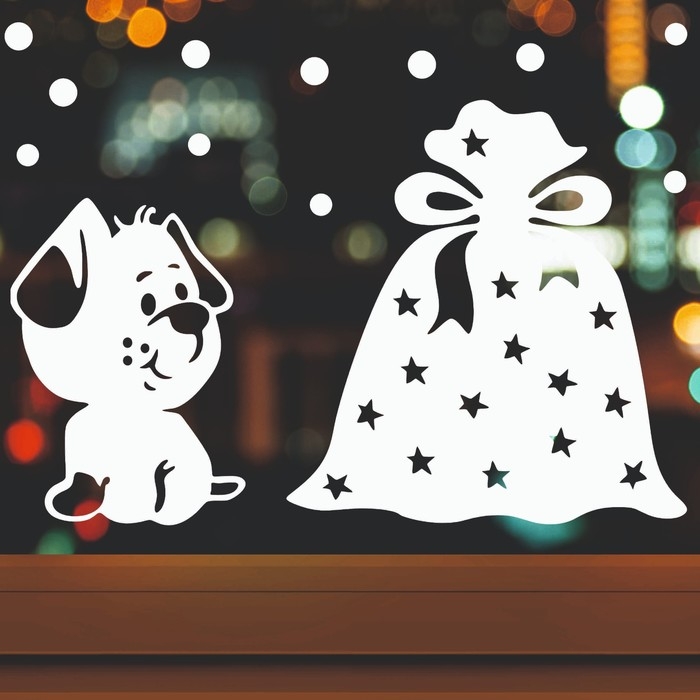 Наклейка декоративная для окон "Щенок и подарки" 55х34 см