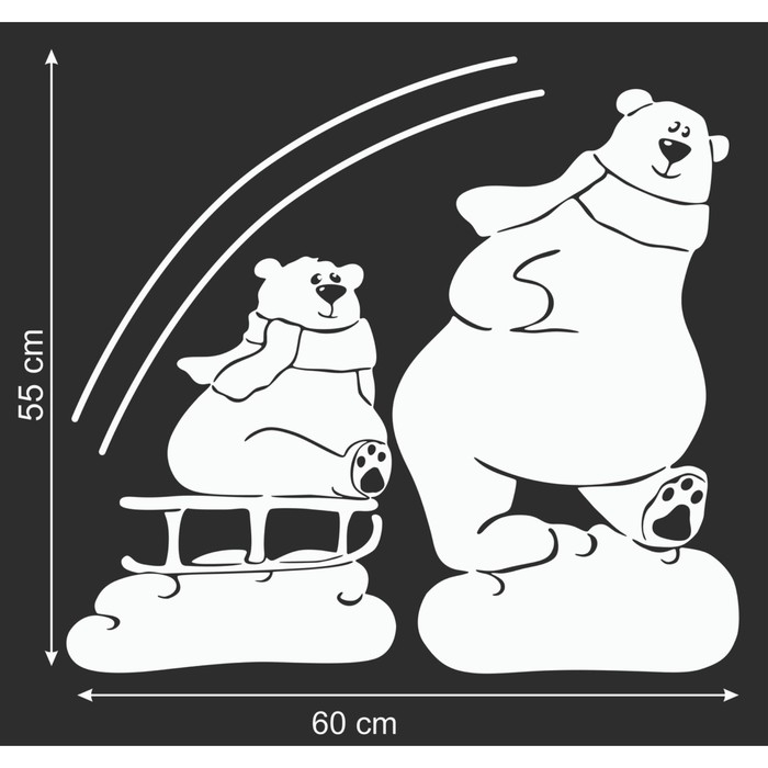 Наклейка декоративная для окон "Мишка на санках" 55х60 см