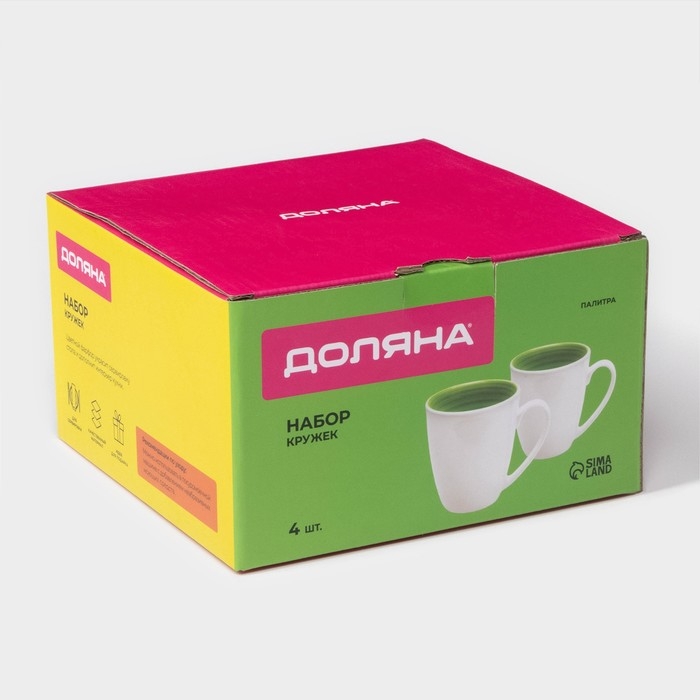 Набор фарфоровых кружек Доляна «Палитра», 4 предмета: 350 мл, цвет белый