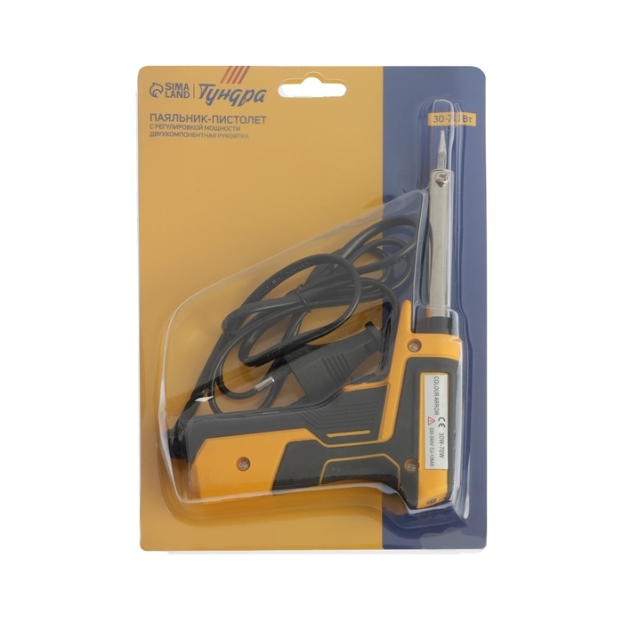Паяльник-пистолет с регулировкой мощности ТУНДРА, 30-70 Вт, двухкомпонентная рукоятка
