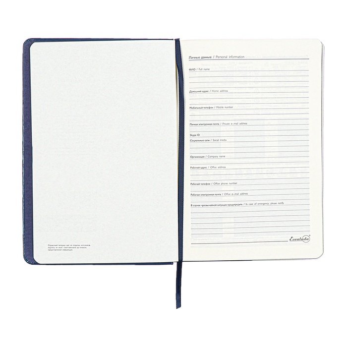 Ежедневник недатированный А5, 160 листов ESCALADA, твердая обложка из искусственной кожи, перфорация, блинтовое тиснение, ляссе, кремовый блок 70г/м2, синий