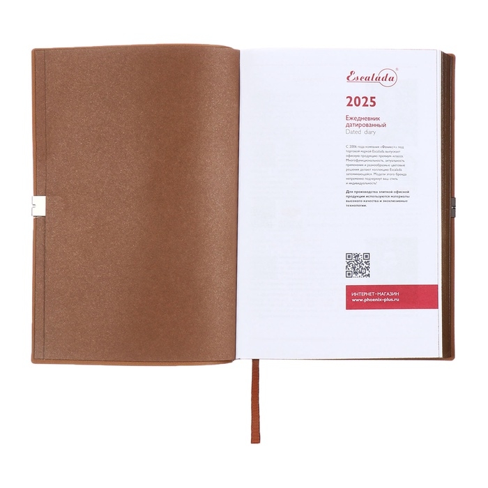 Ежедневник датированный 2025 года, А5, 176 листов ESCALADA, мягкая обложка из искусственной кожи, блинтовое тиснение, ляссе, блок 70 г/м2, бежевый