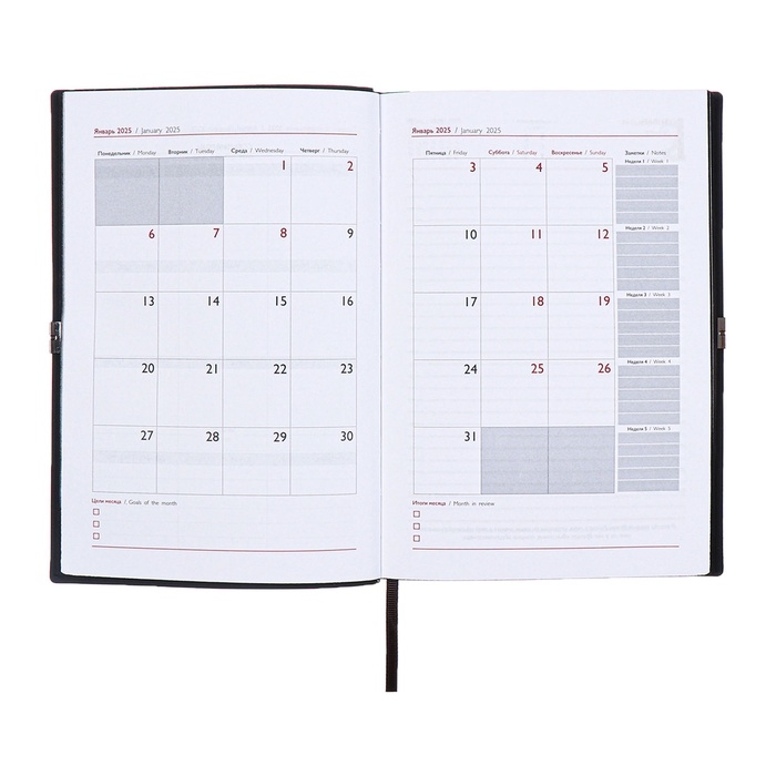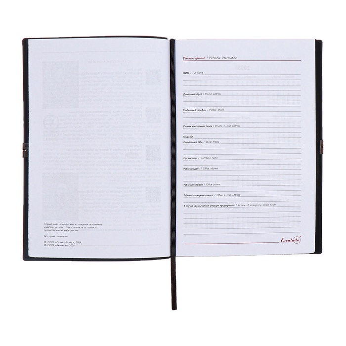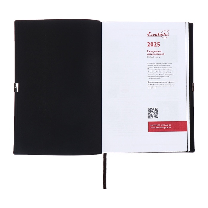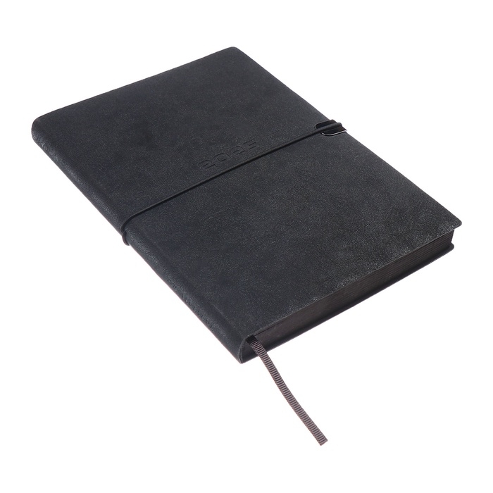 Ежедневник датированный 2025 года, А5, 176 листов ESCALADA, мягкая обложка из искусственной кожи, блинтовое тиснение, ляссе, блок 70 г/м2, чёрный