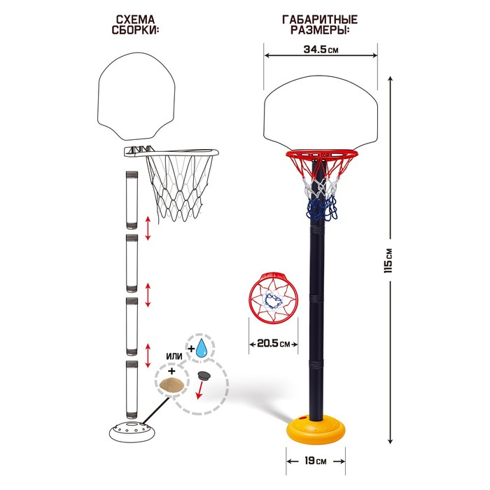 Баскетбольный набор «Баскетбол», регулируемая стойка с щитом, мяч в наборе