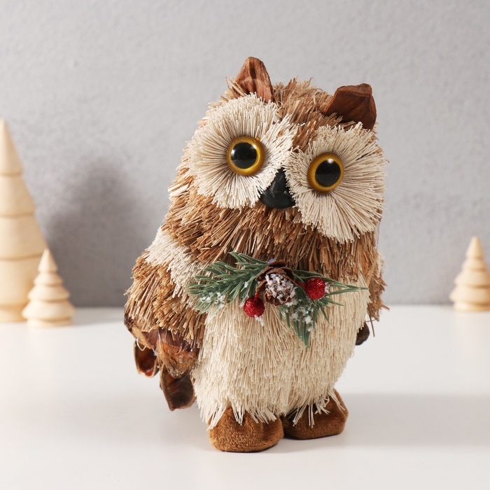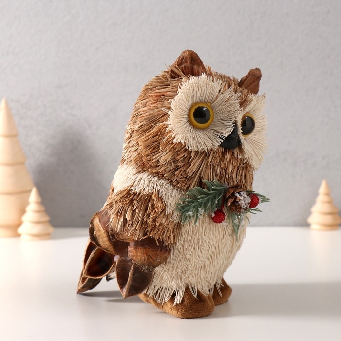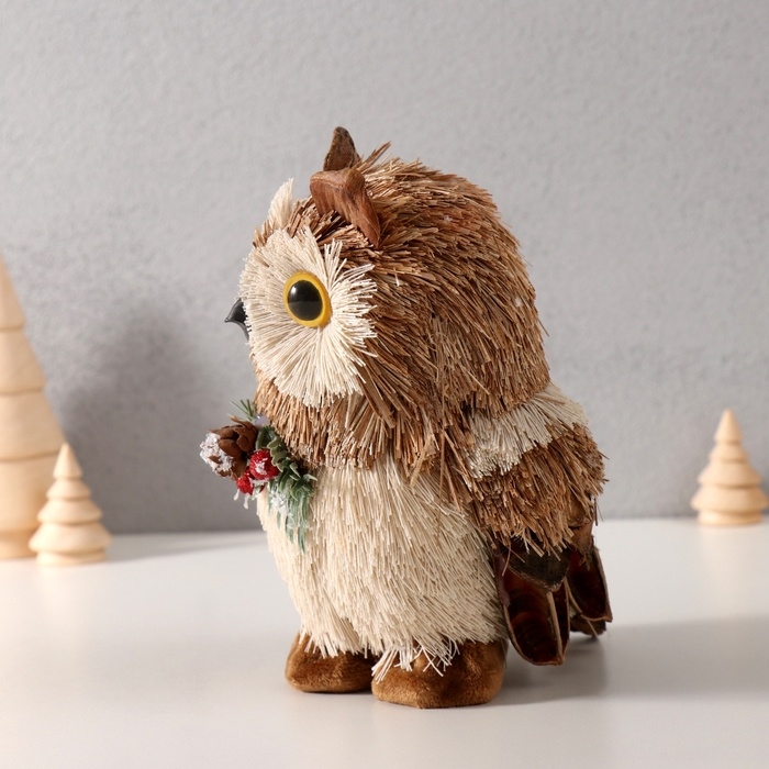 Декор "Совушка с шишкой и еловой веточкой на грудке" 17,5х11,5х12 см