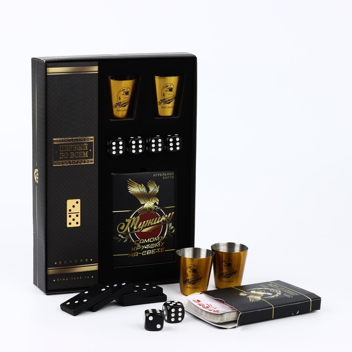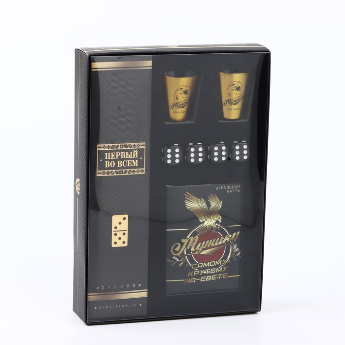 Подарочный набор "Самому крутому", карты, домино, стопки 2 шт, кости игральные 4 шт