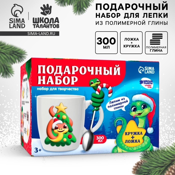 Набор для декора кружки и ложки полимерной глиной на новый год «Змея и ёлка», символ года 2025
