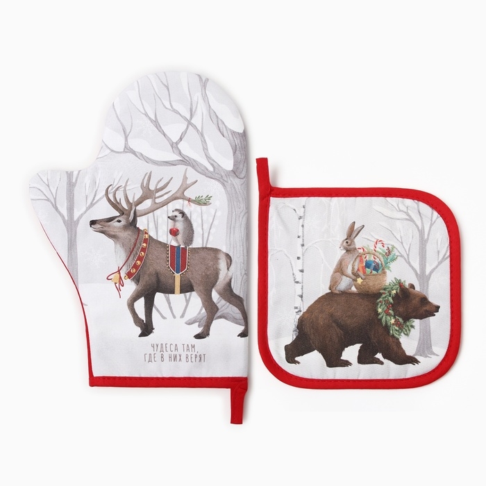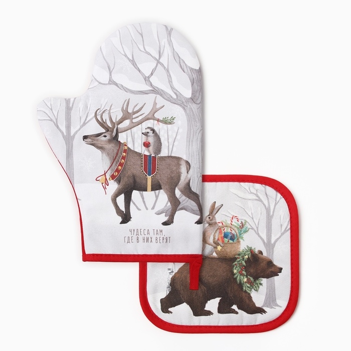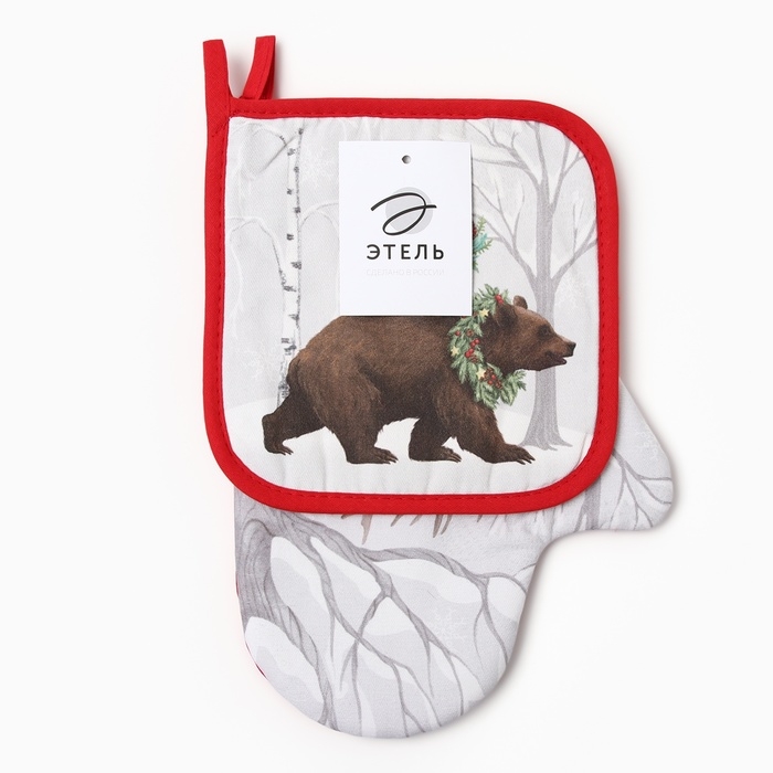 Набор кух. Этель "Лесные звери" варежка 20х28см, прихватка 19х19см,100%хл