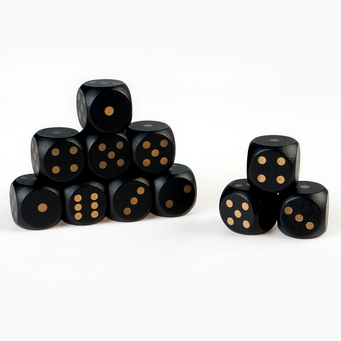Кости игральные, деревянные, набор 30 шт, 3 х 3 см, чёрные