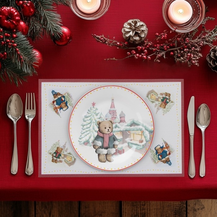 Салфетки новогодние на стол Доляна «Московский мишка», 4 шт, сервировочная, 45×30 см